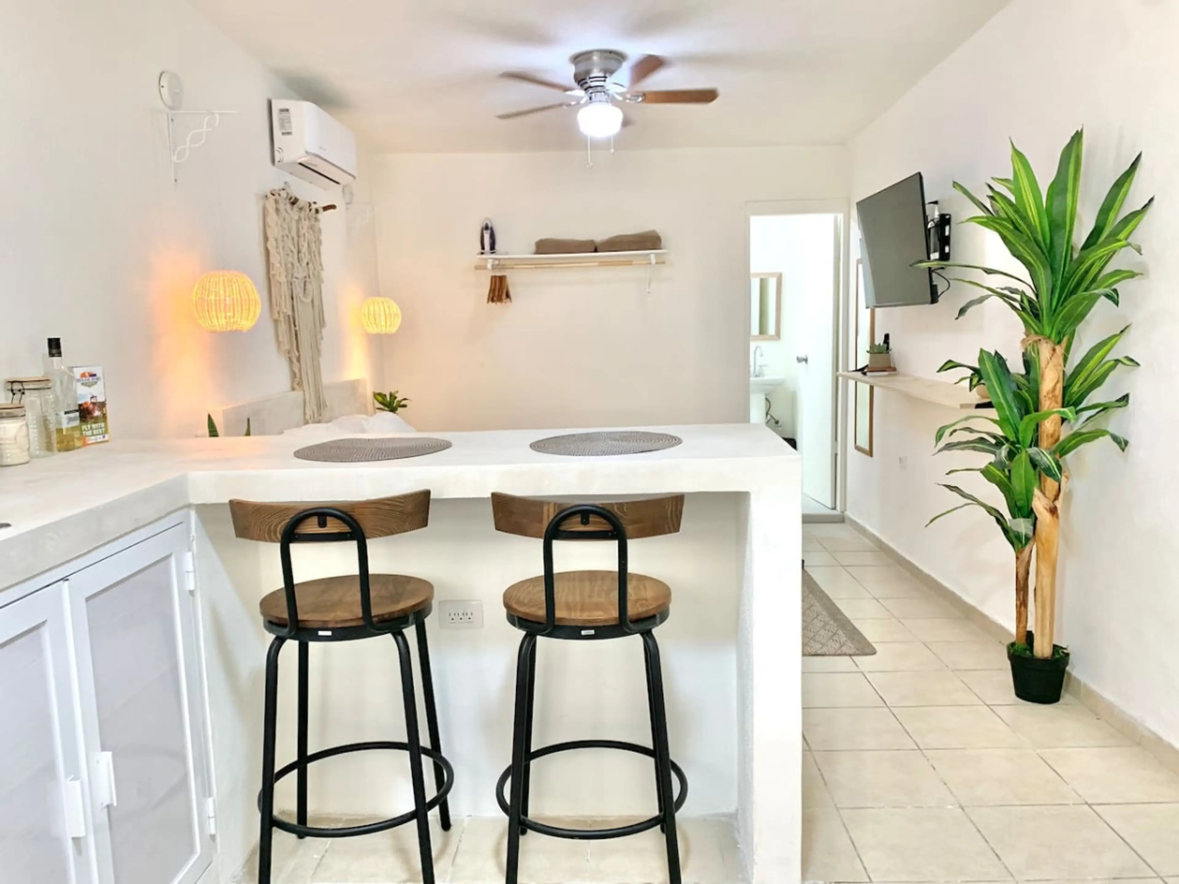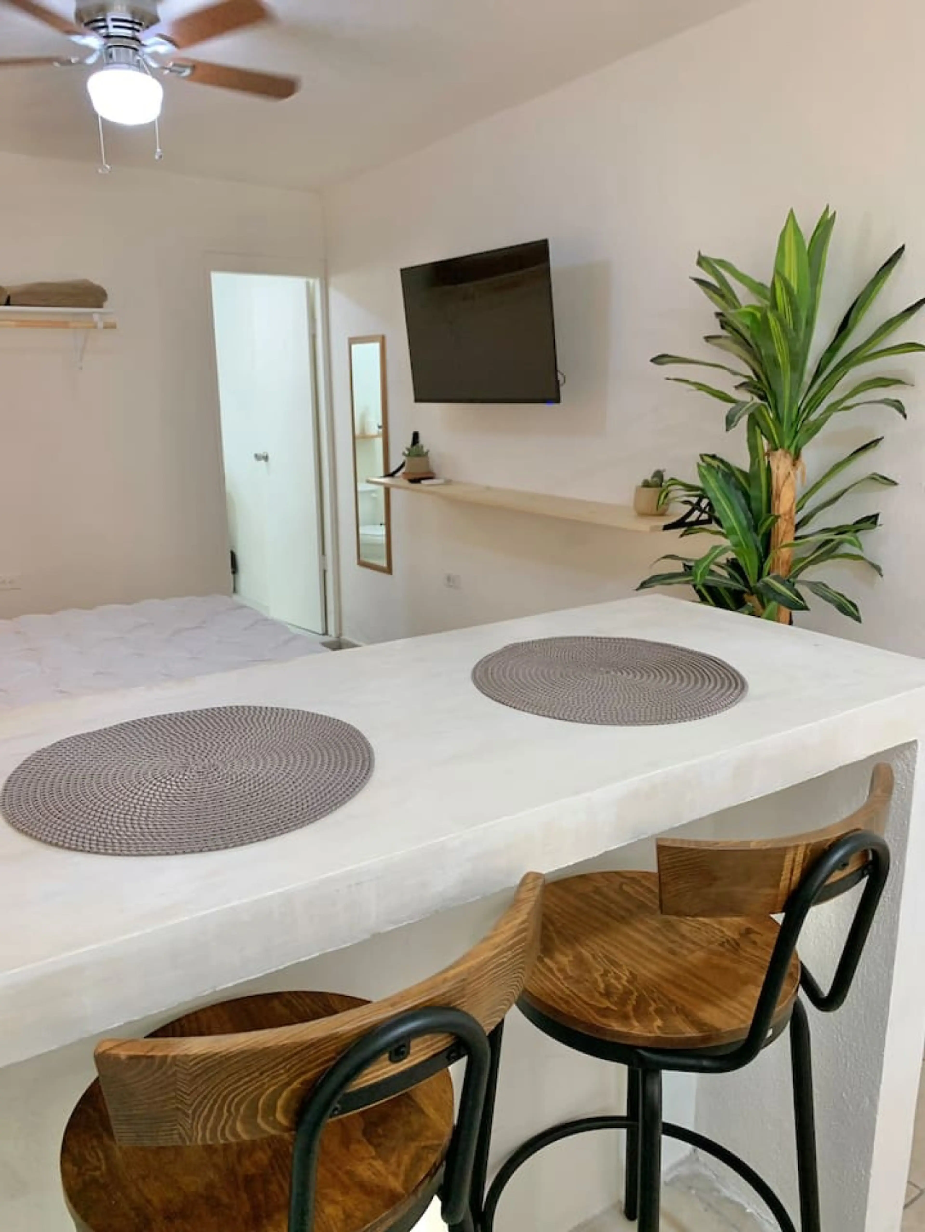 Negative: Place has ants. No hot water n sink. No cold water n shower. Says one bedroom but its a studio.